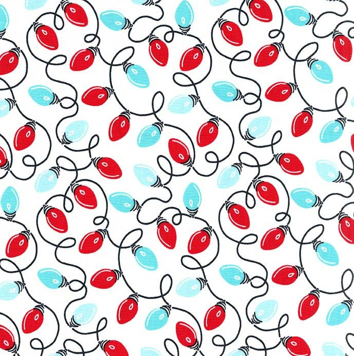 This fabric is 100% cotton and comes from Michael Miller, a wonderfully festive selection of Christmas lights! The range is called 'All The Trimmings'. To give you an idea of scale, each light is approximately 2.5cm in length.