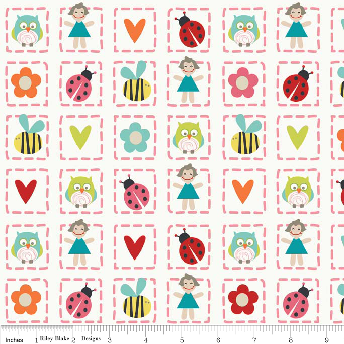 This fabric is 100% cotton and is designed by Zoe Pearn for Riley Blake Designs. The range is called ‘Alphabet Soup’.