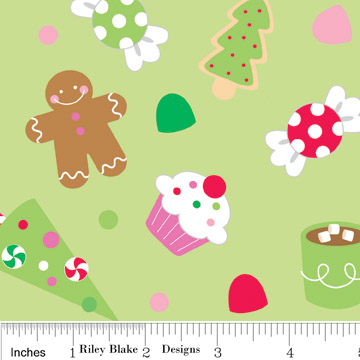 This fabric is 100% cotton and is flannel (also known as brushed cotton). It is designed by Doodlebug Designs for Riley Blake. The range is called ‘Christmas Candy’.