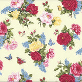 This fabric is 100% cotton and is designed by Makower - The Henley Studio. The range is called ‘Summer Garden’.