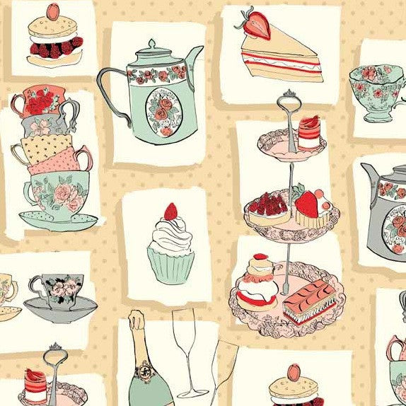 This fabric is 100% cotton and is designed by Makower - The Henley Studio. The range is called ‘Temptations’.